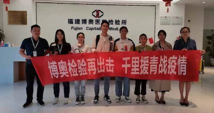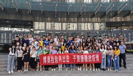 10月,青島市突發(fā)新冠病毒感染疫情,博奧在第一時間從旗下北京、福建、廣東等各地醫(yī)學(xué)檢驗所選調(diào)26名技術(shù)骨干和物資,奔赴青島,投入到抗擊新冠疫情的戰(zhàn)斗中。