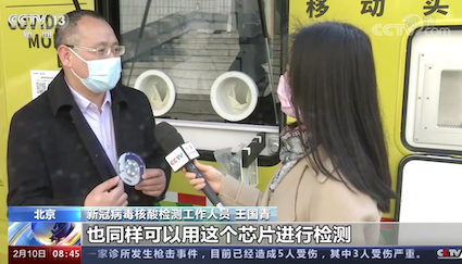 ? ? ? “這個芯片相當于一個微型的實驗室它集成了核酸的提取、核酸的擴增檢測,在芯片里面全自動完成,45分鐘以后,我們就可以在系統(tǒng)里看到結果?!北本┎W晶典生物技術有限公司副總裁王國青表示。信息結果將同步推送到健康寶,除了人的樣本以外,環(huán)境樣本也可以用全集成芯片進行檢測。