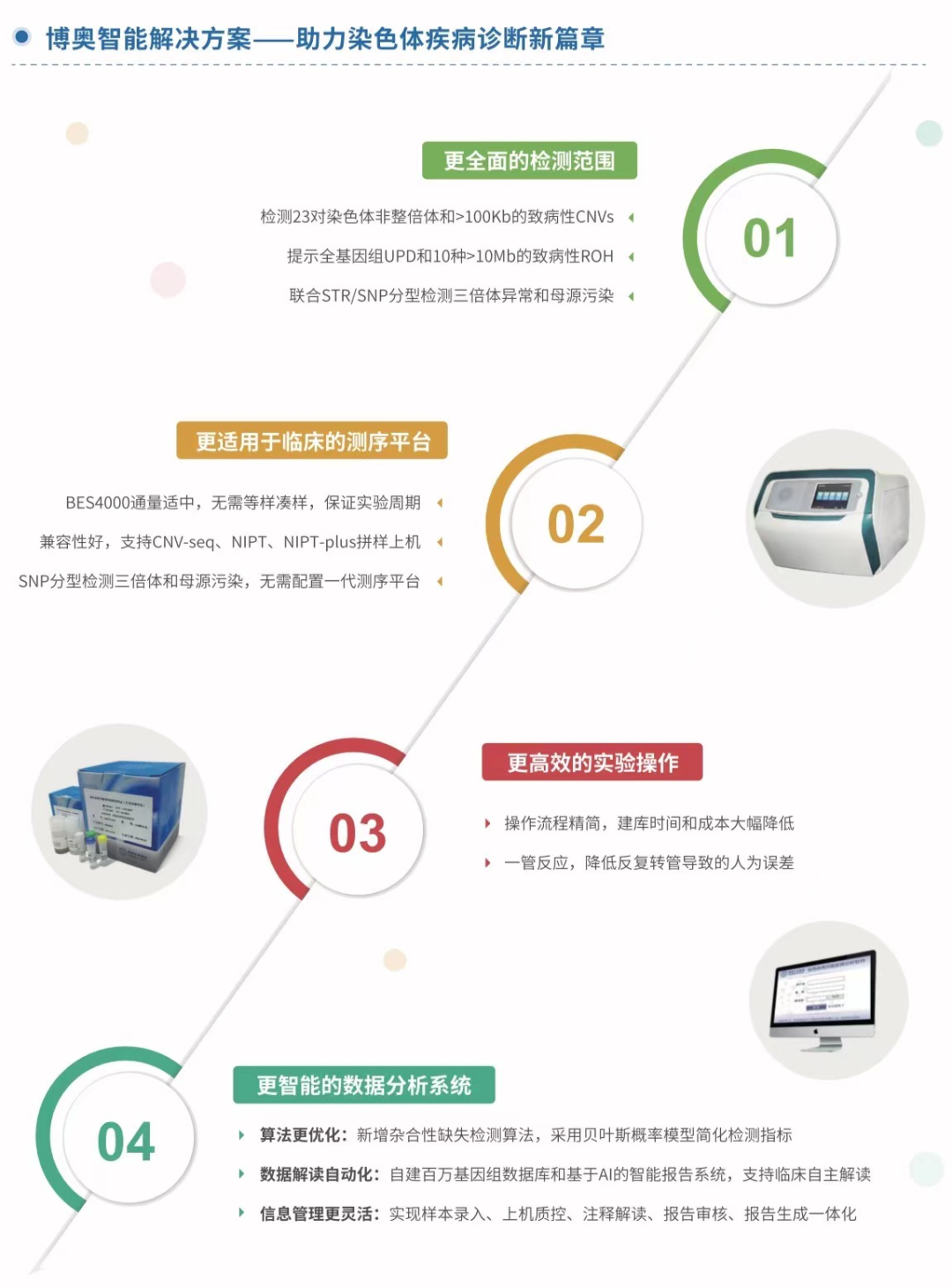 博奧晶典CNV-seq系列產(chǎn)品全面升級(jí),在原有產(chǎn)品檢測(cè)23對(duì)染色體非整倍體、100Kb以上缺失/重復(fù)的基礎(chǔ)上,新開(kāi)發(fā)了特有的生信算法并獲得專(zhuān)利授權(quán),新增基因組純合區(qū)域ROH檢測(cè),可提示全基因組UPD和10種>10Mb的致病性ROH;此外,博奧晶典自主研發(fā)的基于BES4000的SNP分型技術(shù)有效提示三倍體異常和定量鑒定5%以上的樣本交叉污染,為臨床提供更具性?xún)r(jià)比的檢測(cè)產(chǎn)品,為出生缺陷精準(zhǔn)防控提供更全面的解決方案。