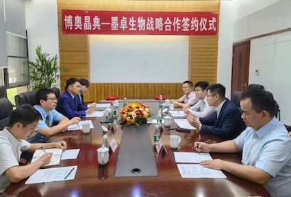2022年8月26日,北京博奧晶典生物技術(shù)有限公司(以下簡稱“博奧晶典”)與墨卓生物科技(浙江)有限公司(以下簡稱“墨卓生物”)在四川成都舉辦了戰(zhàn)略合作簽約儀式。博奧晶典副總裁孫義民先生、科研合作服務中心主任李彥澤博士,墨卓生物 CEO 裴顥博士及墨卓生物 CTO 鄭文山博士等出席簽約儀式。