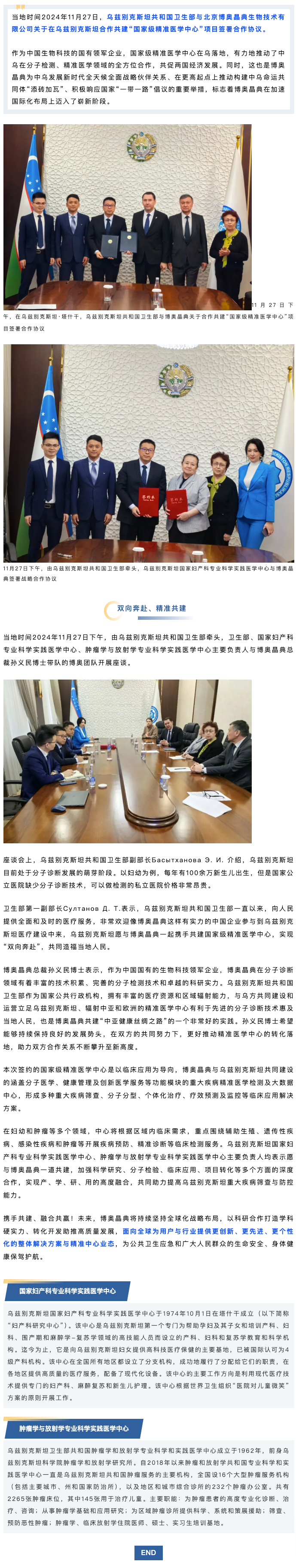 共建模式打開“一帶一路”新局面丨博奧晶典與烏茲別克斯坦攜手合作“國(guó)家級(jí)精準(zhǔn)醫(yī)學(xué)中心”項(xiàng)目