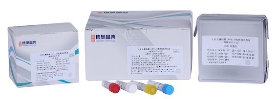 采用多重不對稱PCR結(jié)合通用芯片(Tag array)的技術(shù)對常見的HPV病毒進行檢測和分型。