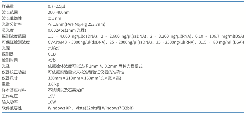 ☆ 在40-3000ng/μl(dsDNA)濃度范圍,測量精度CV>3%;