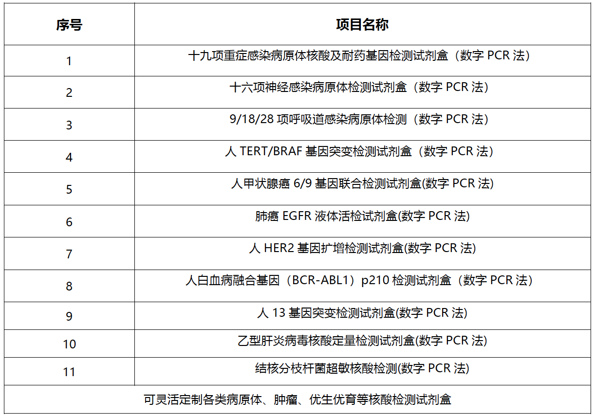 反應(yīng)體系可達(dá)50 μL,更大體積更靈敏;微液滴數(shù)目可達(dá)10萬,定量上限50萬拷貝/體系