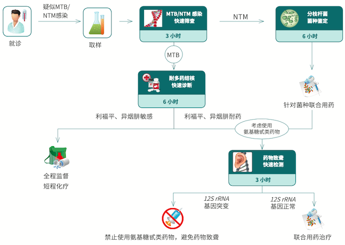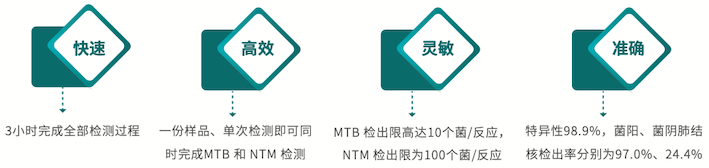 采用雙重實時熒光PCR技術(shù)和TaqMan探針技術(shù)實現(xiàn)對結(jié)核分枝桿菌(MTB)和非結(jié)核分枝桿菌(NTM)的區(qū)分檢測。 該試劑盒是目前國內(nèi)唯一獲得CFDA認(rèn)證的可以快速區(qū)分結(jié)核分枝桿菌和非結(jié)核分枝桿菌感染的PCR產(chǎn)品。