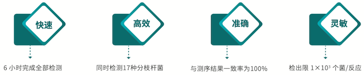 采用生物芯片技術(shù)將序列已知的寡聚核苷酸探針?lè)肿庸潭ㄓ谛酒缓笈c待檢標(biāo)本中標(biāo)記的核酸進(jìn)行分子雜交,通過(guò)檢測(cè)每個(gè)探針?lè)肿拥碾s交信號(hào)強(qiáng)度,對(duì)17種臨床常見(jiàn)分枝桿菌進(jìn)行快速鑒定,從而準(zhǔn)確鎖定致病菌種類型。該試劑盒是國(guó)內(nèi)第一批獲得CFDA認(rèn)證的分枝桿菌快速菌種鑒定產(chǎn)品。