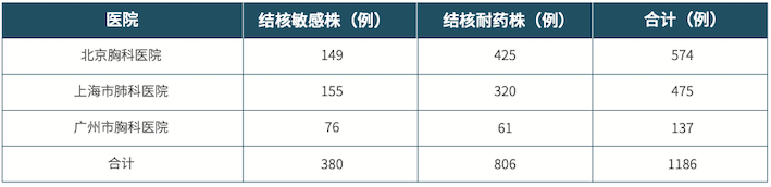 北京胸科醫(yī)院、上海市肺科醫(yī)院和廣州市胸科醫(yī)院共1186例樣本臨床驗證