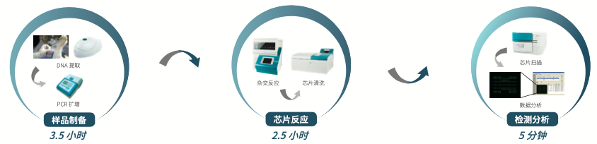 采用基因芯片檢測技術(shù),快速對兩種主要的一線抗結(jié)核藥物利福平和異煙肼的耐藥情況進行評估,進而實現(xiàn)對耐多藥結(jié) 核病的快速診斷。該試劑盒是國內(nèi)第一個獲得CFDA 認(rèn)證的耐多藥結(jié)核病快速診斷產(chǎn)品。