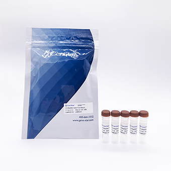 本產(chǎn)品是采用 SYBR Green I 嵌合熒光法進(jìn)行實(shí)時(shí)熒光定量 PCR 的專用 2× 濃度預(yù)混液。本產(chǎn)品含有優(yōu)化濃度的 GenStar Fast HSTaq DNA Polymerase、SYBR Green I、dNTPs、Mg2+、反應(yīng)緩沖液和穩(wěn)定劑等成分。主要用于基因組 DNA 靶序列和 RNA 反轉(zhuǎn)錄后 cDNA 靶序列的檢測。GenStar Fast HSTaq DNA Polymerase 高溫加熱前,抗 Taq 單克隆抗體與 Taq 結(jié)合, 抑制 Taq 的聚合酶活性,從而抑制在低溫條件下出現(xiàn)的由引物和模板 DNA 非特異性雜交或引物二聚體引起的非特異性擴(kuò)增。 抗體在 PCR 反應(yīng)的預(yù)變性步驟中已完全失活,不會阻礙之后 Taq 酶聚合反應(yīng),大大提高了 PCR 反應(yīng)的靈敏度及特異性。 優(yōu)化濃度的 SYBR Green I 熒光染料摻入 DNA 雙鏈后,熒光信號增強(qiáng),而不摻入鏈中 SYBR Green I 染料分子熒光信號不變, 從而保證熒光信號的增加與 PCR 產(chǎn)物的增加完全同步,熒光可以在退火或延伸階段測定。