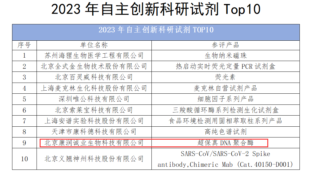 GenStar 入選“2023年度自主創(chuàng)新科研試劑Top 10”!