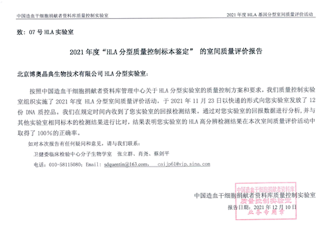 ? ? ? 博奧晶典HLA分型檢測實驗室自2006年正式為中華骨髓庫提供分型檢測服務起,至今已與骨髓庫合作超過15年,因出眾的質(zhì)量優(yōu)勢、技術(shù)優(yōu)勢、服務優(yōu)勢,連續(xù)多年在骨髓庫組織的2%抽檢中取得100%準確率,并多次榮獲骨髓庫頒布的“先進實驗室”、“優(yōu)秀合作實驗室”等榮譽稱號。
