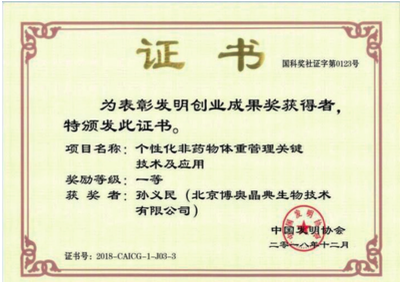 《個性化非藥物體重管理關(guān)鍵技術(shù)及應(yīng)用》榮獲“2018 年發(fā)明創(chuàng)業(yè)成果獎”一等獎