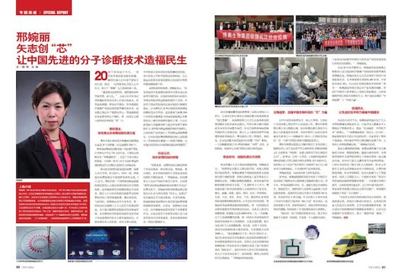 近日,中國期刊中唯一以人物報道為重點的大型綜合性新聞半月刊《中華英才》專訪了清華大學(xué)醫(yī)學(xué)院研究員、博士生導(dǎo)師,生物芯片北京國家工程研究中心常務(wù)副主任,博奧生物集團(tuán)有限公司高級副總裁,北京博奧晶典生物技術(shù)有限公司總裁邢婉麗,深入報道了博奧在抗疫期間全力投入科研攻關(guān)的戰(zhàn)“疫”歷程。