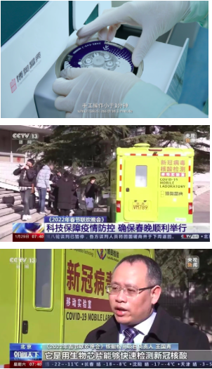 在2021、2022年央視春晚疫情防控工作中,以及2022年冬奧會(huì)開(kāi)幕倒計(jì)時(shí)100天主題活動(dòng)等重大活動(dòng)中,“輕騎兵”均發(fā)揮了重要作用。這抹備受矚目的“晶典黃”是國(guó)內(nèi)首臺(tái)集采集和檢測(cè)為一體的移動(dòng)式新冠病毒檢測(cè)實(shí)驗(yàn)室,裝載基于全新一代先進(jìn)的芯片實(shí)驗(yàn)室(Lab-on-a-chip)設(shè)計(jì)理念,檢測(cè)時(shí)僅需將樣本保存液加入芯片,封閉芯片后即可上機(jī),手工操作小于1分鐘。生物反應(yīng)全程(包括核酸提取、核酸純化、擴(kuò)增反應(yīng)、核酸檢測(cè)和結(jié)果判讀等)均集成在一個(gè)整體密閉、內(nèi)部分區(qū)的微流控芯片內(nèi),由全自動(dòng)核酸分析儀完成,因此無(wú)需專業(yè)分區(qū)實(shí)驗(yàn)室,無(wú)需人工干預(yù),最大程度降低操作人員感染及樣本間交叉污染的風(fēng)險(xiǎn)。
