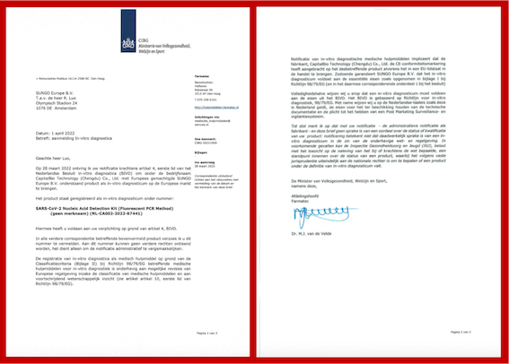 2022年11月4日,博奧晶典新冠病毒核酸檢測(cè)整體解決方案再添新成果,凍干型高靈敏度的新型冠狀病毒(2019-nCoV)核酸檢測(cè)試劑盒 (熒光PCR法)正式獲得醫(yī)療器械注冊(cè)證(國械注準(zhǔn):20223401469)。這是國家藥品監(jiān)督管理局審批通過的首個(gè)凍干型新冠病毒核酸檢測(cè)試劑盒,同時(shí)具備中國NMPA和歐洲CE“雙證”,為堅(jiān)持“動(dòng)態(tài)清零”,全面加強(qiáng)常態(tài)化疫情防控能力建設(shè)提供全新戰(zhàn)疫利器。