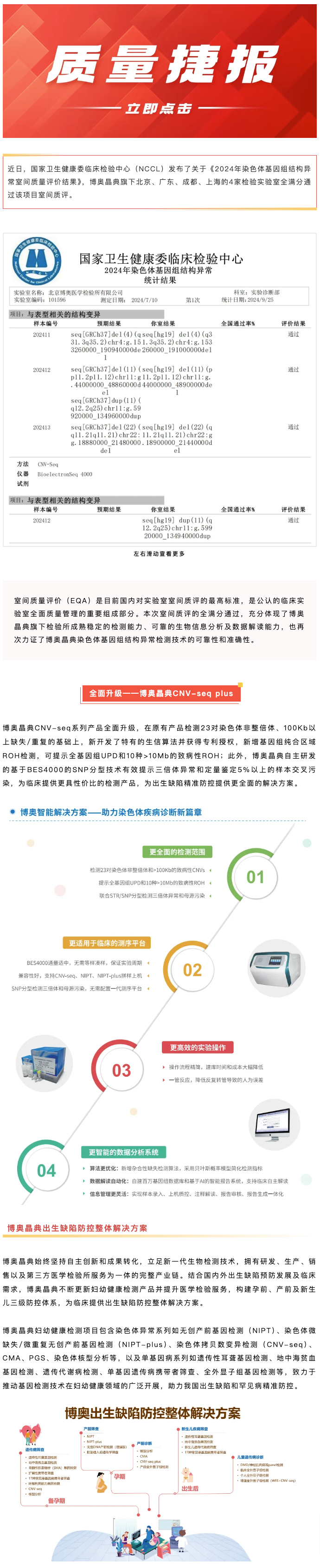 質(zhì)量捷報(bào) | 博奧晶典旗下檢驗(yàn)所滿(mǎn)分通過(guò)2024年NCCL染色體基因組結(jié)構(gòu)異常室間質(zhì)評(píng)