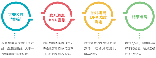 在廣東省婦幼保健院、南京市婦幼保健院、浙江大學醫(yī)學院附屬婦產(chǎn)科醫(yī)院、鄭州大學第三附屬醫(yī)院完成了10,818例前瞻性臨床樣本的驗證研究,與染色體核型分析結果和出生隨訪結果對比,其靈敏度為100%,特異性為99.91%,總符合率為99.91%。試劑盒已于2020年8月獲得醫(yī)療器械注冊證(醫(yī)療器械注冊證號:國械注準20203400708)。 截至目前,已完成超過400萬例臨床樣本的篩查,避免了多個家庭的異常患兒出生,為出生缺陷防控做出了突出貢獻。