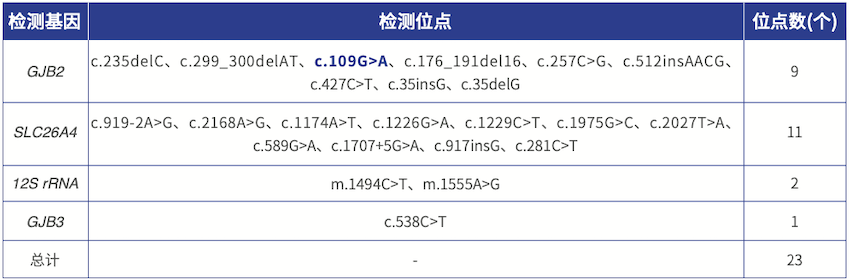 二十三項遺傳性耳聾相關基因檢測試劑盒(微流控芯片法)采用微流控芯片技術結合競爭性等位基因特異性擴增技術對 耳聾相關4個基因23種突變形式進行檢測。國內首個納入GJB2 C.109G>A位點的獲證試劑盒。